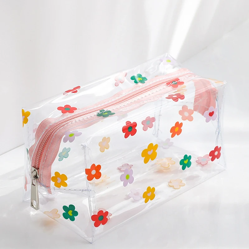 Прозрачная Водонепроницаемая косметичка с цветами для женщин, портативная Вместительная дорожная Сумочка для хранения косметики и туалетных принадлежностей