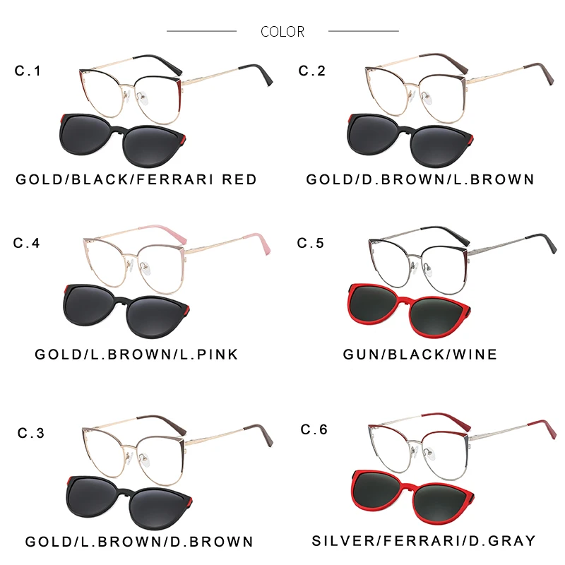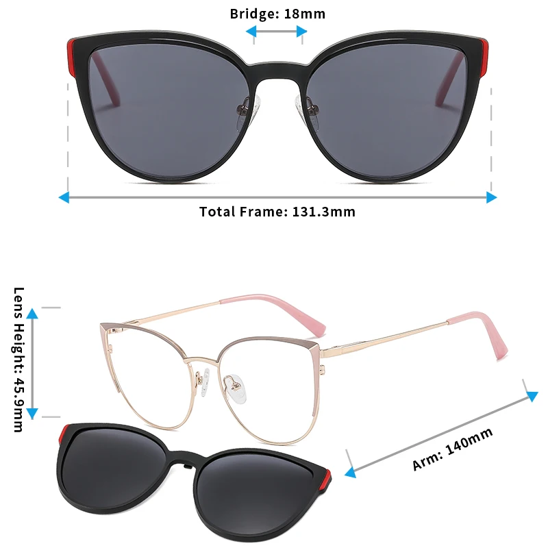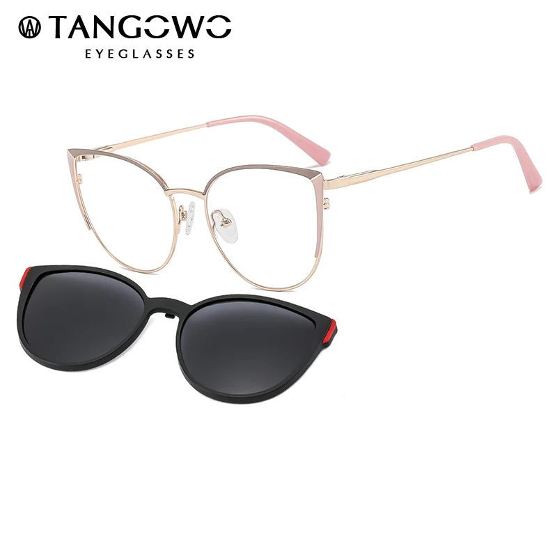 Круглые Солнцезащитные очки 2 в 1 TANGOWO кошачий глаз из сплава, модные женские очки, оптическая оправа, магнитные очки для близорукости Uv400 B23113