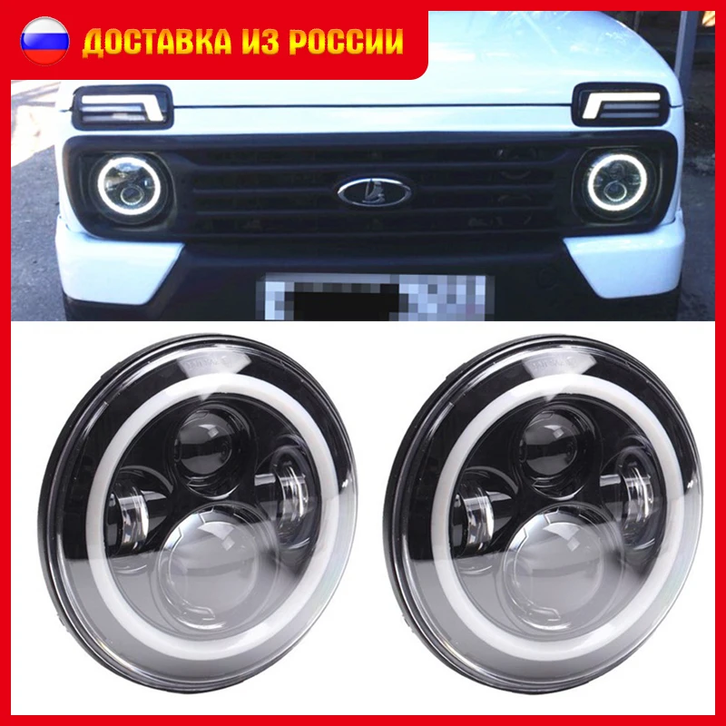2xFor Lada Niva 7 дюймовый светодиодный головной светильник Hi/ближнего и дальнего света светильник Halo Угол Eyes DRL светодиодные фары для Jeep Wrangler для внедорожников 4х4 suzuki Самурай