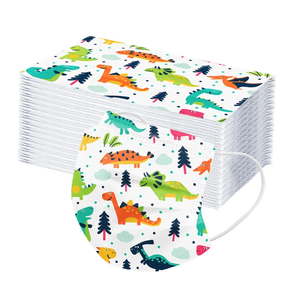 Одноразовая детская маска 50 шт.лот Mascarillas Kawaii с принтом динозавра, детская маска для лица, 3-слойная Нетканая Пыленепроницаемая защитная маска