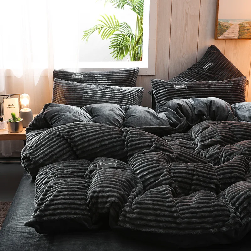 Волшебный флисовый пододеяльник, зимнее теплое стеганое одеяло, Фланелевое покрывало, постельные принадлежности в полоску из кораллового флиса, набор пододеяльников «Королева»