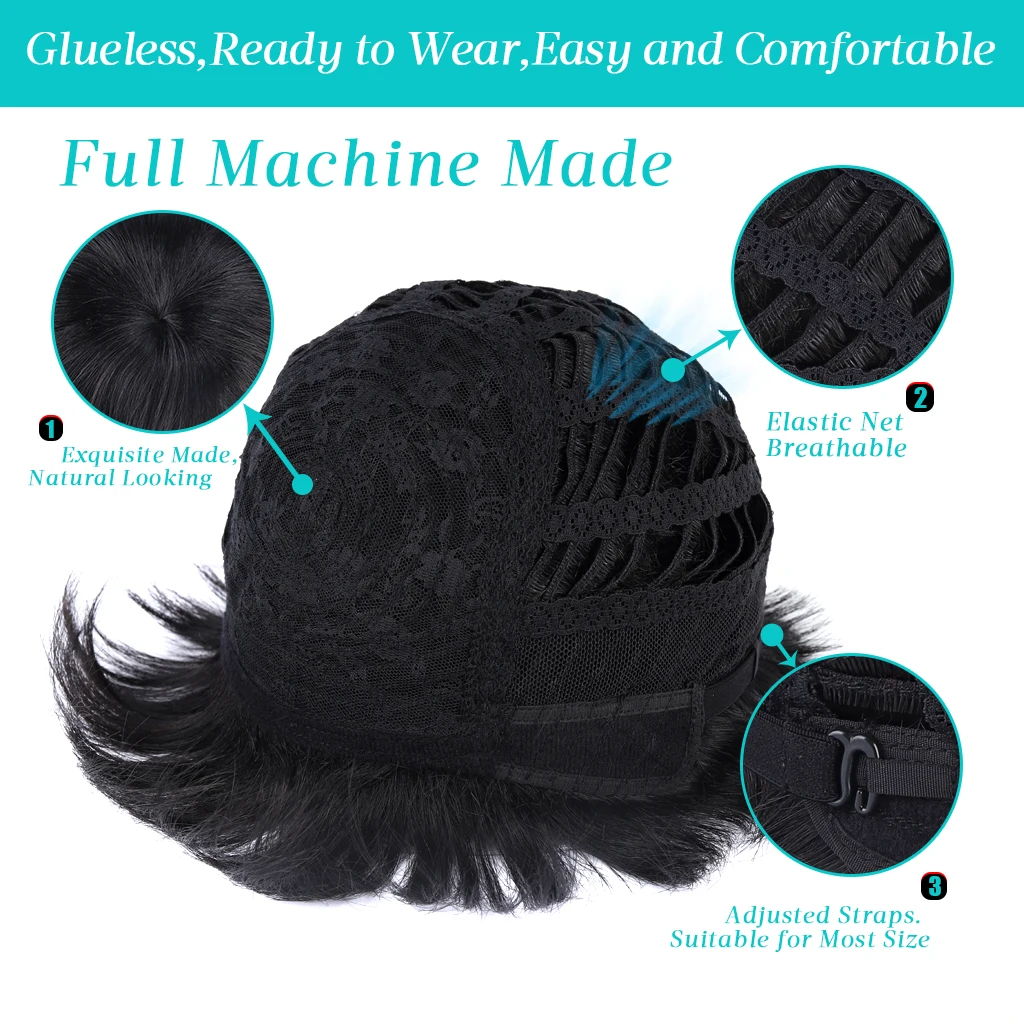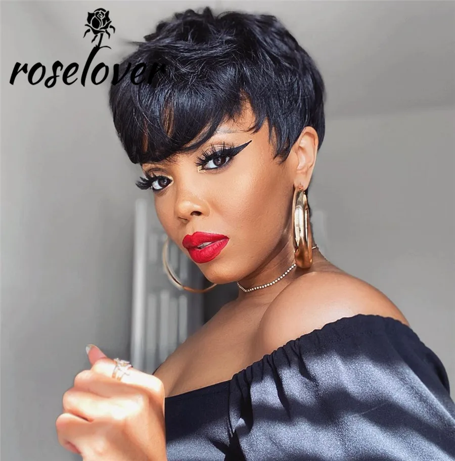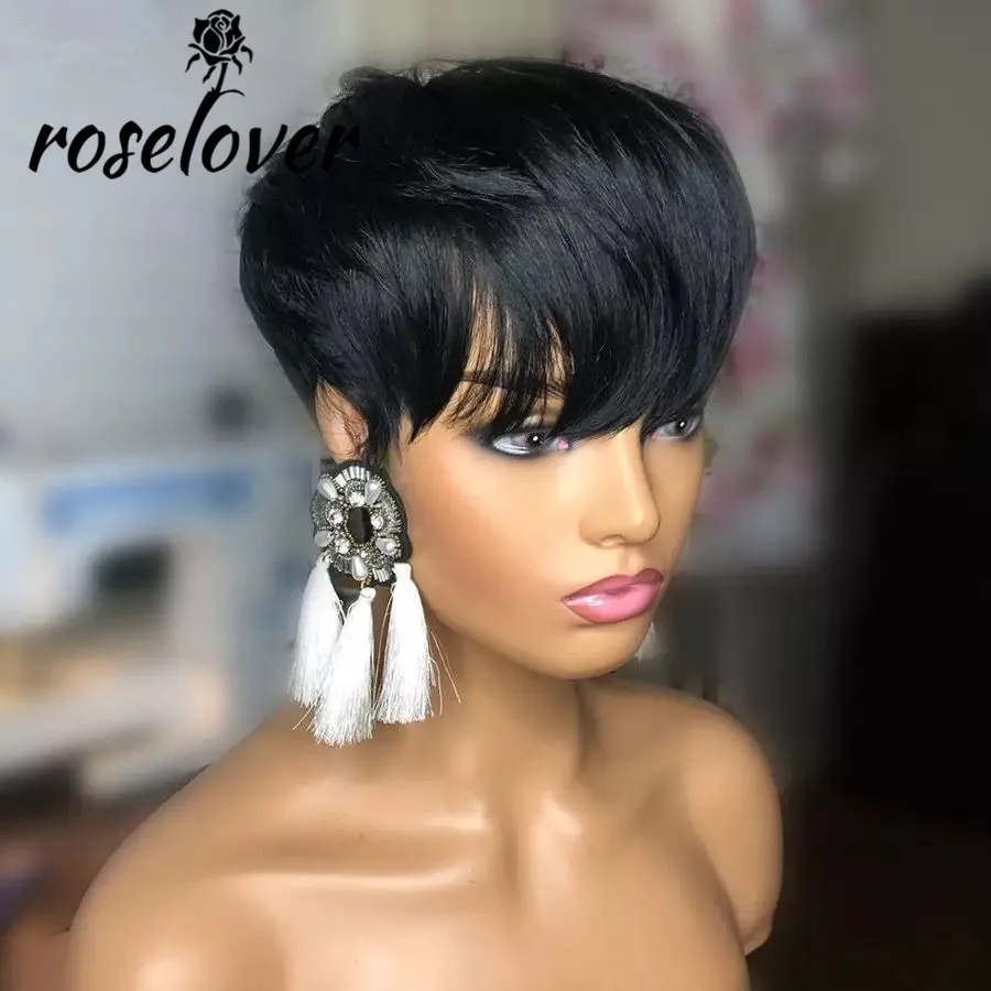 Roslover Pixie Cut прямой парик бразильские волосы Remy средние человеческие волосы парики для женщин натуральный цвет полный машинный изготовленный парики