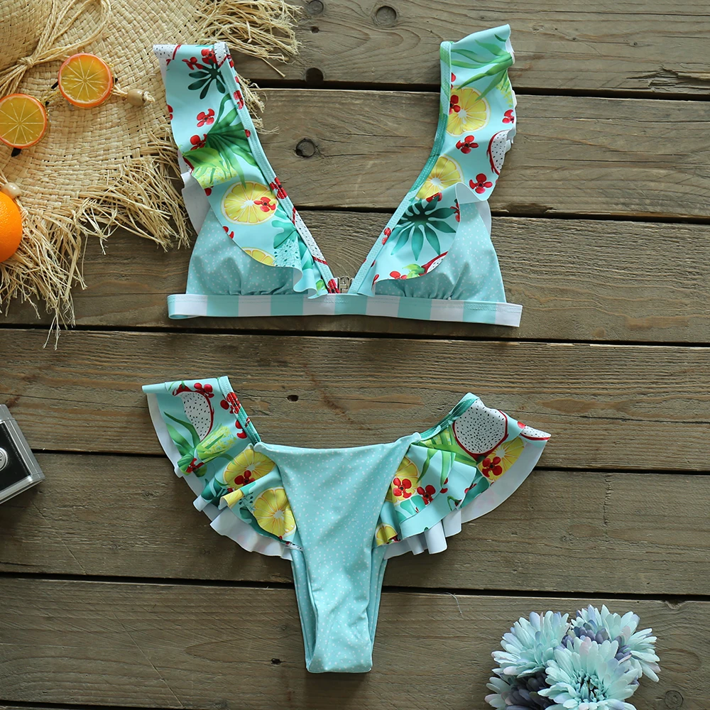 2021 сексуальный комплект бикини с высокой талией с оборками, купал...