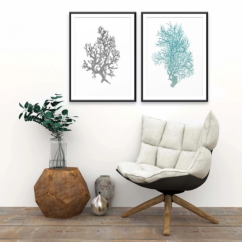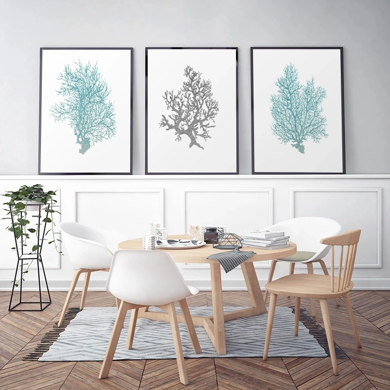 Темно-синие коралловые художественные принты, античное настенное ук...