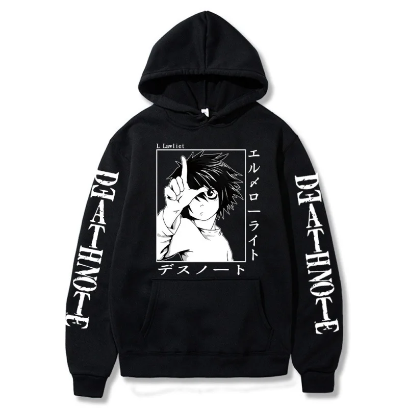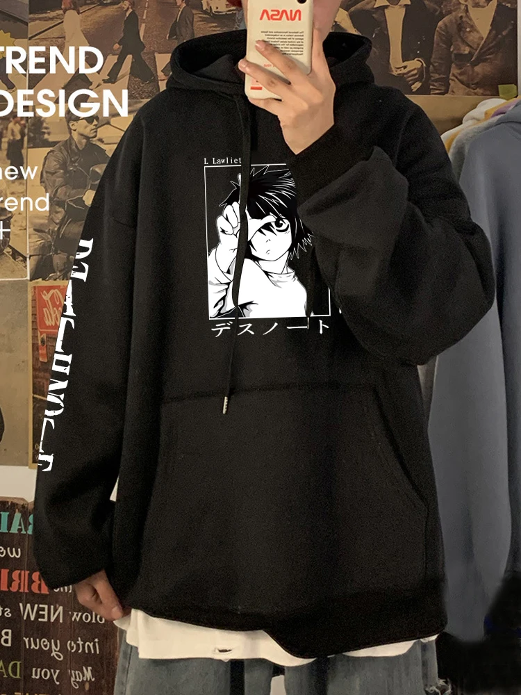 Худи мужское с японским аниме принтом тетрадь смерти, Повседневная Уличная одежда, свитшот с графическим принтом в стиле Харадзюку, топы унисекс, 2021