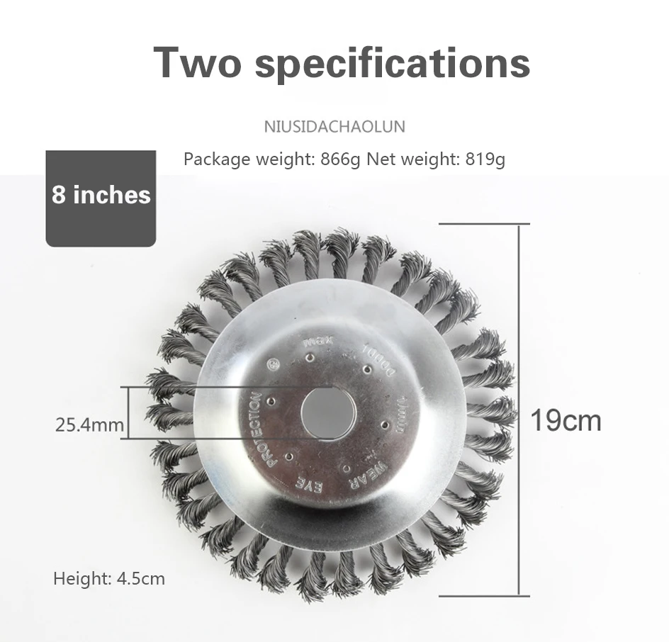 Описание:Острый и эффективныйЩетка для сорняков имеет внутреннюю фиксированную структуру пластины для обеспечения стабильности и безопасности.Более острый и эффективный, чем другие типы.Длительный срок службы и долговечностьЩетка для сорняков изготовлена из углеродистой стальной проволоки, которая может нормально работать при ударе по камню и жесткому блоку. Срок службы будет в 10 раз дольше, чем у других триммеров.Подходит и применяетсяЩетка для сорняков подходит для большинства моделей триммеров и подходит для садовых инструментов с прямым валом.Характеристики:Вес: около 0,55 кг (6 дюймов)/1,01 кг (8 дюймов)Материал: стальная проволокаХарактеристики: не ржавеет, прочный, длительный срок службы. Состоит из внутренней фиксированной пластины.Производительность, безопасность и качество этого провода колеса 100% протестированыРазмер: Approx150 * 150*55 мм (6 дюймов)/ 200*200*60 мм (8 дюймов)