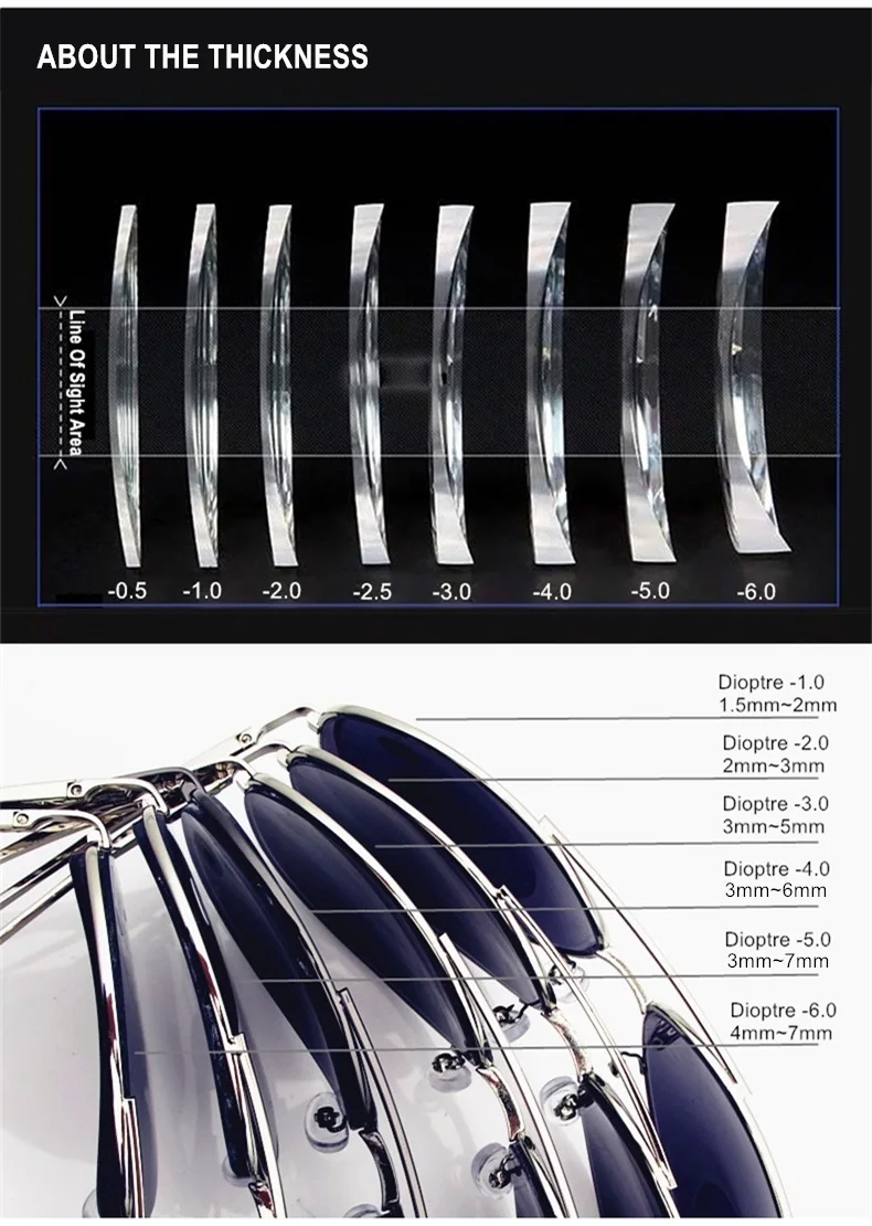 Для линз с высокой близорукостью линзы выглядят тоньше, что является нормальным, пожалуйста, не обращайте внимания.