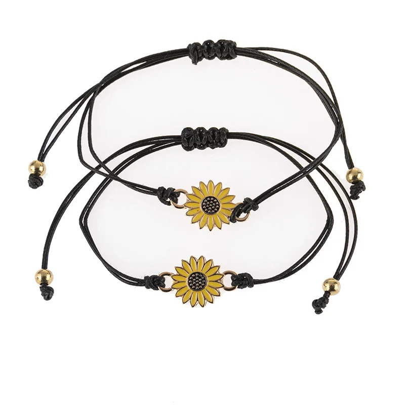 Женский браслет с подсолнухами, регулируемый плетеный браслет с маргариткой и хризантемой, браслет для влюбленных, ювелирные изделия