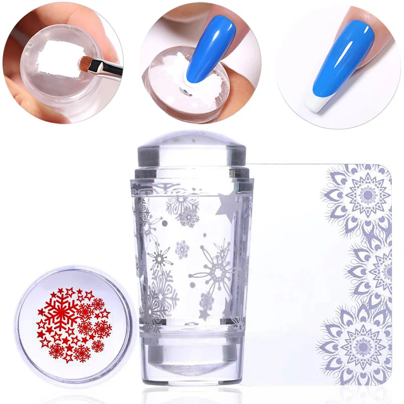 Прозрачный штамп для ногтей со скребком Желейный силиконовый штамп ...