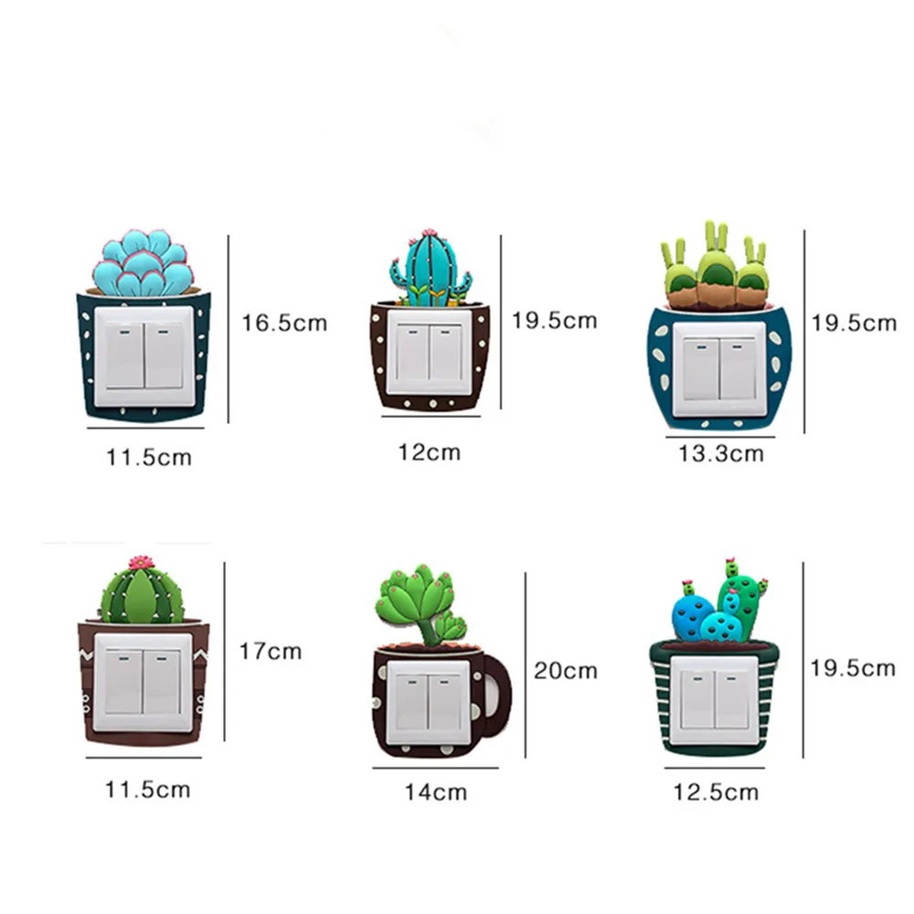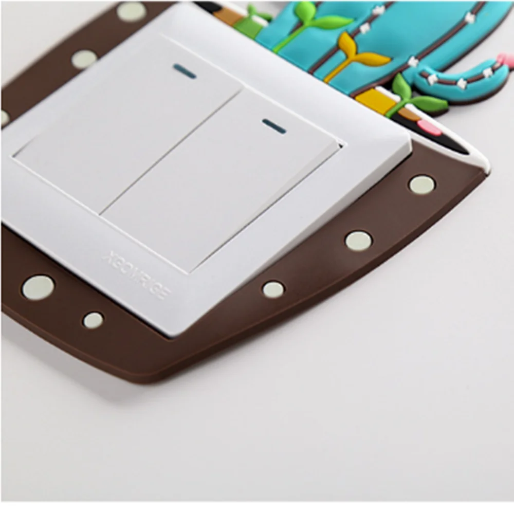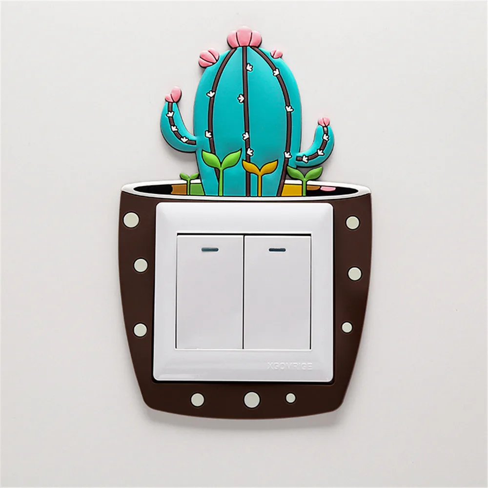 Креативный мультяшный кактус, светящийся Переключатель, крышка, настенная наклейка, переключатель, декоративная светящаяся наклейка