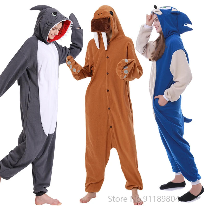 Акула Kigurumis Единорог Пижама взрослый комбинезон аниме енот комб...