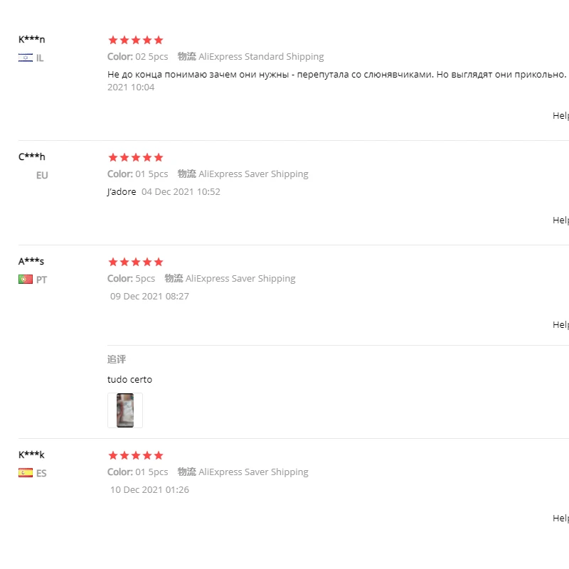 Страна: ES Color: 02 5pcs Доставка: Saver Shipping 25.11.2021