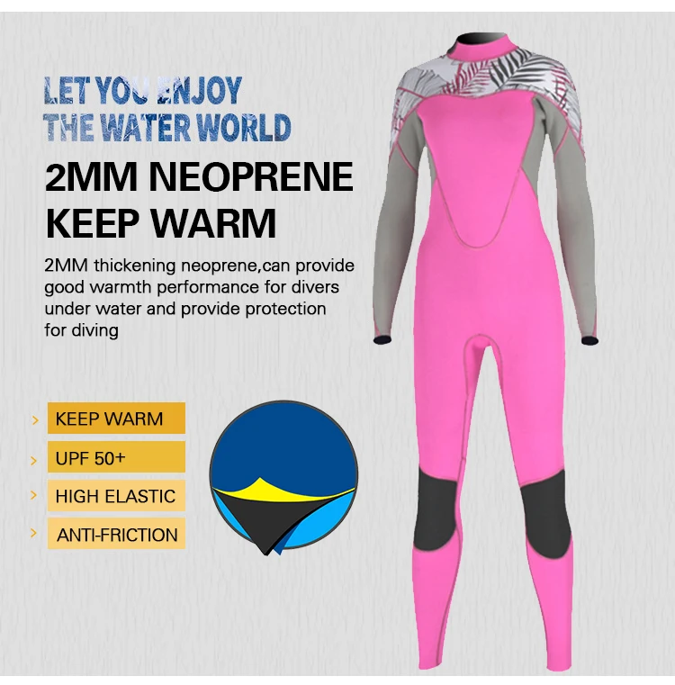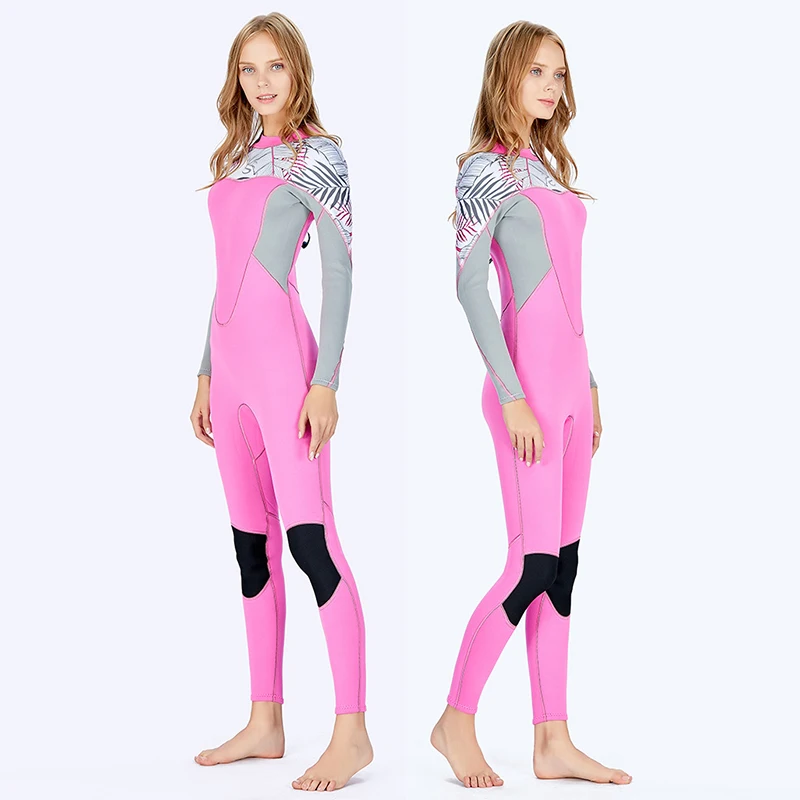 Неопреновый женский цельный высокоэластичный гидрокостюм 2 мм, костюм для серфинга и дайвинга, Классический купальник с длинными рукавами и сращением ярких цветов