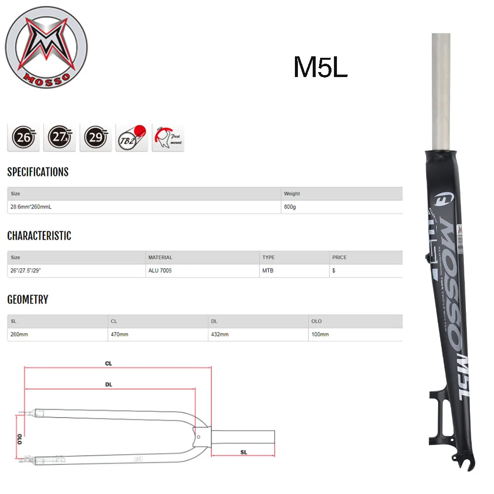Mosso Vork M5L M5EV MTB велосипед Vork Geschikt voor 26/27,5/29er дорожный Fiets Vork v/диск voorvorken Kegel Gloss Matte