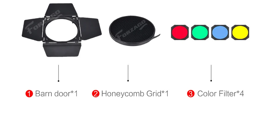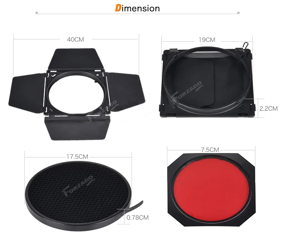 Godox BD-04 Barn Door + Honeycomb Grid + 4 Color Filter for Standard Reflector For SK400ii DE400 DE300 QS400 QS60 Studio Flash