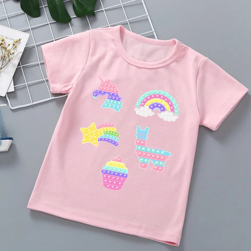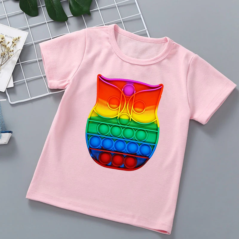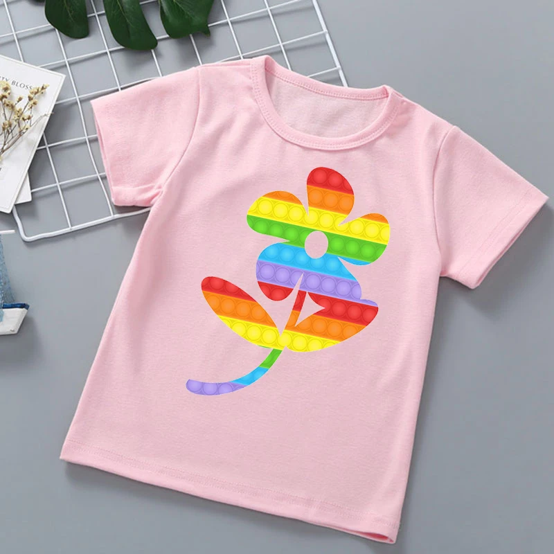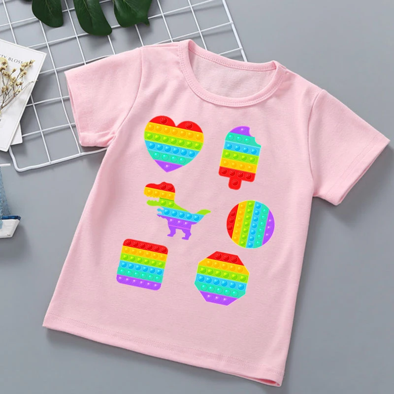 Радужный попит, футболка с графическим принтом Love, детская одежда для девочек, забавная футболка с игрушками-антистрессом, подарок на день рождения, футболка, детская одежда