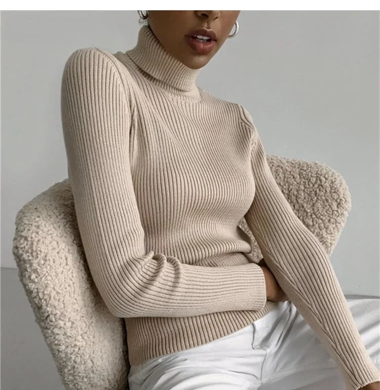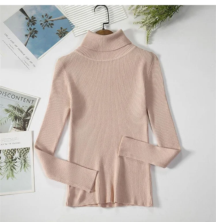 Модный женский вязаный свитер в рубчик, вязаный базовый пуловер для похудения, женские мягкие Пуловеры с высоким воротником, женский свитер