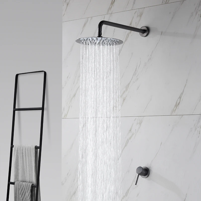 81012 дюймов Круглая настенная Душевая система тропический дождь для ванной комнаты, настенная установка, Душевая система тропический дождь в металлическом корпусе серого цвета