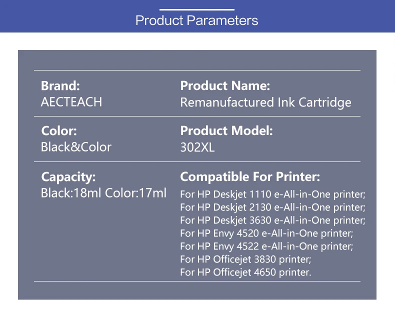 Картридж для принтера HP 302 302XL, HP 302 DeskJet 1110 2130 HP 302XL Envy 4520 NS45 Officejet 3630