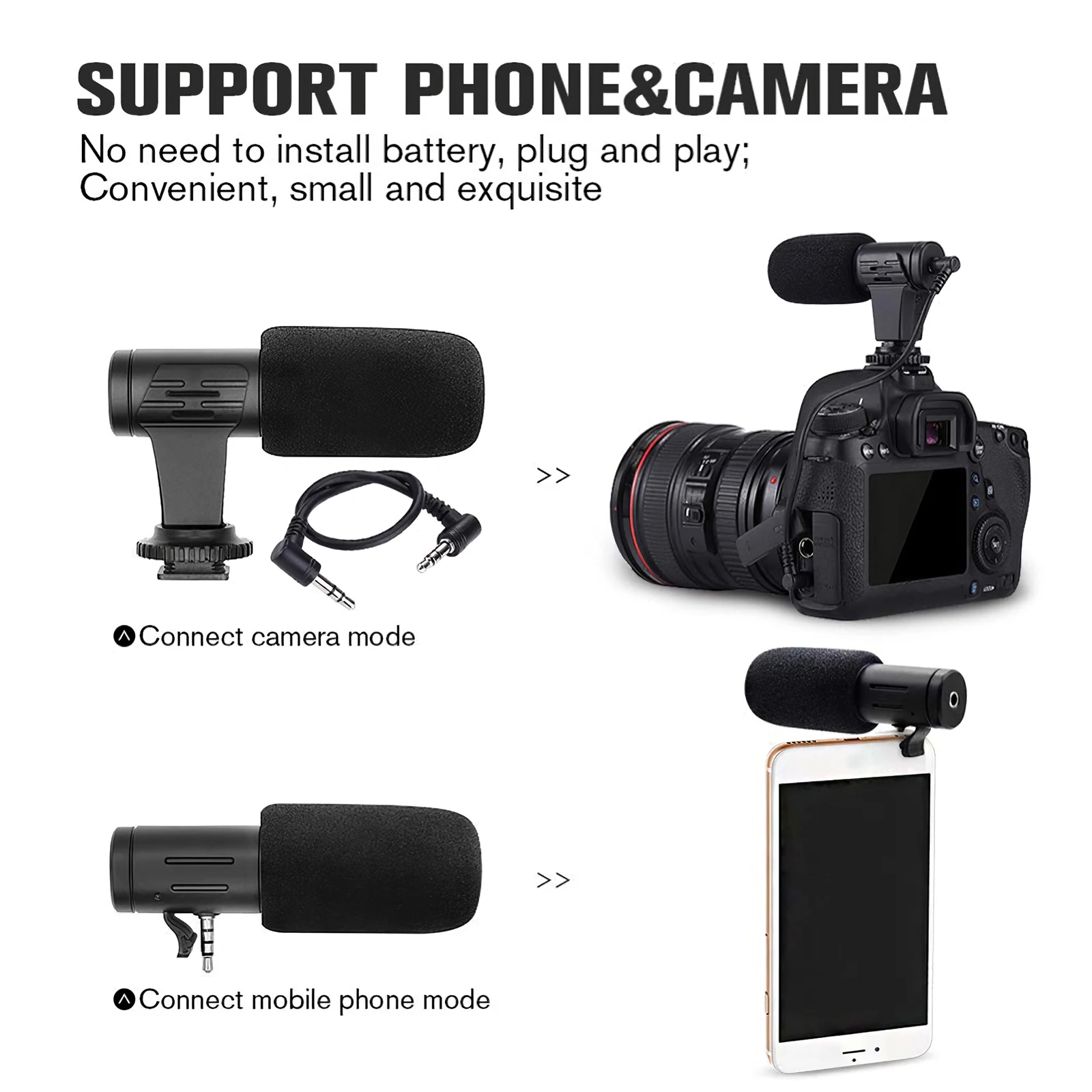 Звуковой студийный микрофон для Canon, Sony, для Nikon, DSLR, DV, Vlog, разъем 3,5 мм, микрофон для камеры, конденсаторный микрофон, микрофон для записи, ультра-широкий
