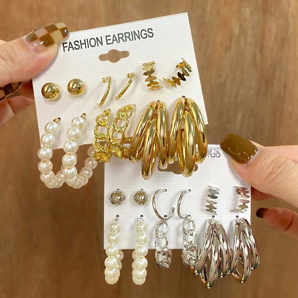 IPARAM винтажные геометрические золотые металлические Искусственные серьги-подвески в стиле панк с жемчугом 2021 трендовый набор серег ювелирные изделия