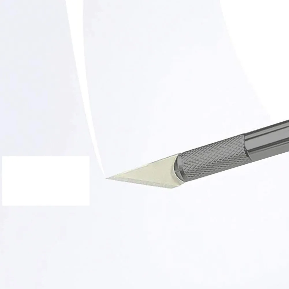 * Широкое применение: набор лезвий больше подходит. Например, резка дерева, картона, бумаги, пластика, ткани, кожи и пенопласта. Лезвие очень остро, пожалуйста, будьте осторожны при использовании и замените лезвие.