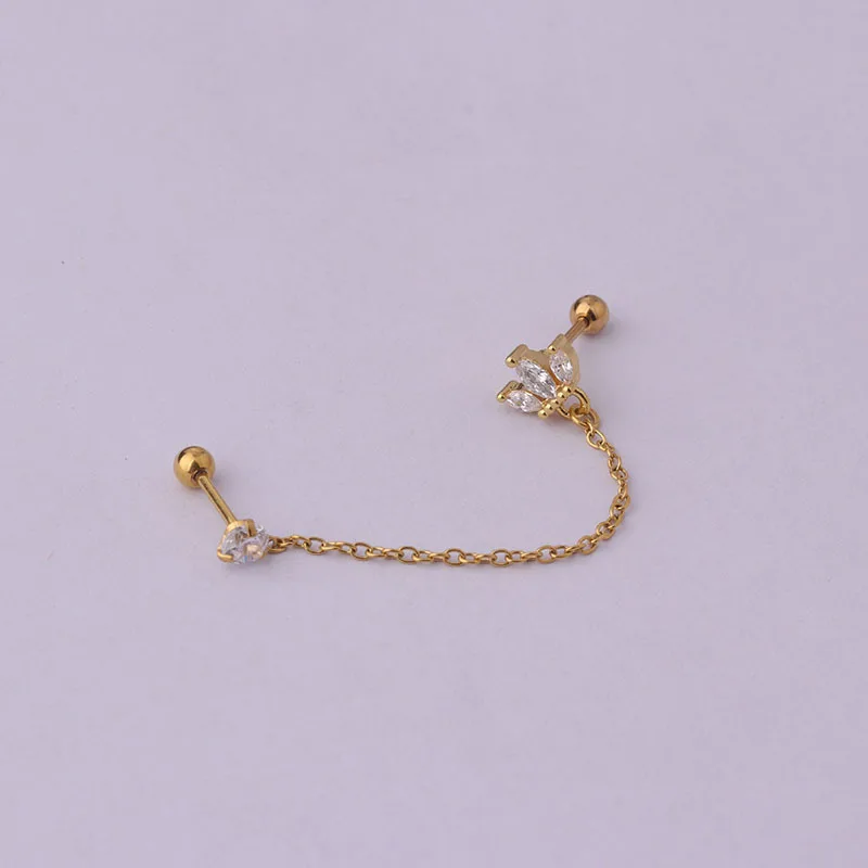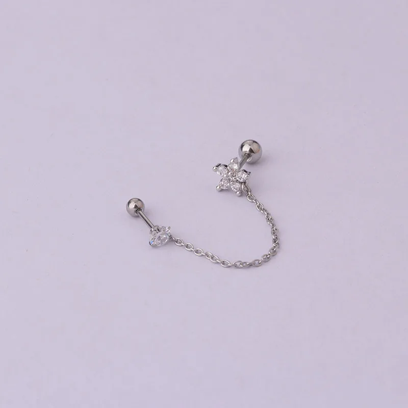 Корейские модные серьги-гвоздики с двойной цепочкой для женщин, 1 шт., 2021, трендовые ювелирные украшения, пирсинг циркониевые серьги с цветочным мотивом для подростков