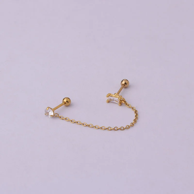 1 шт. корейские модные двойные серьги-гвоздики с цепочкой для женщин 2021 тренд ювелирные изделия пирсинг циркониевые серьги с цветочным мотивом для подростков