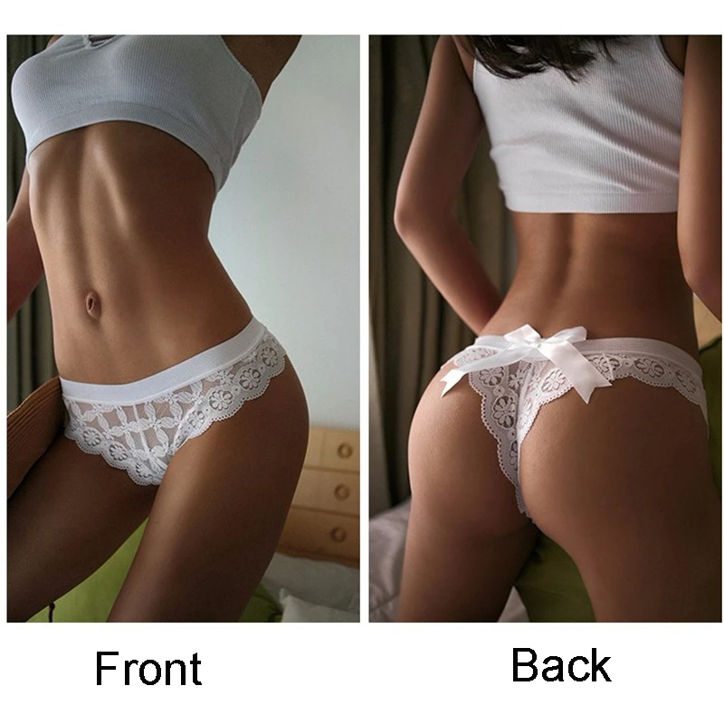 Трусики-танга женские кружевные бесшовные с бантом, 1 шт.