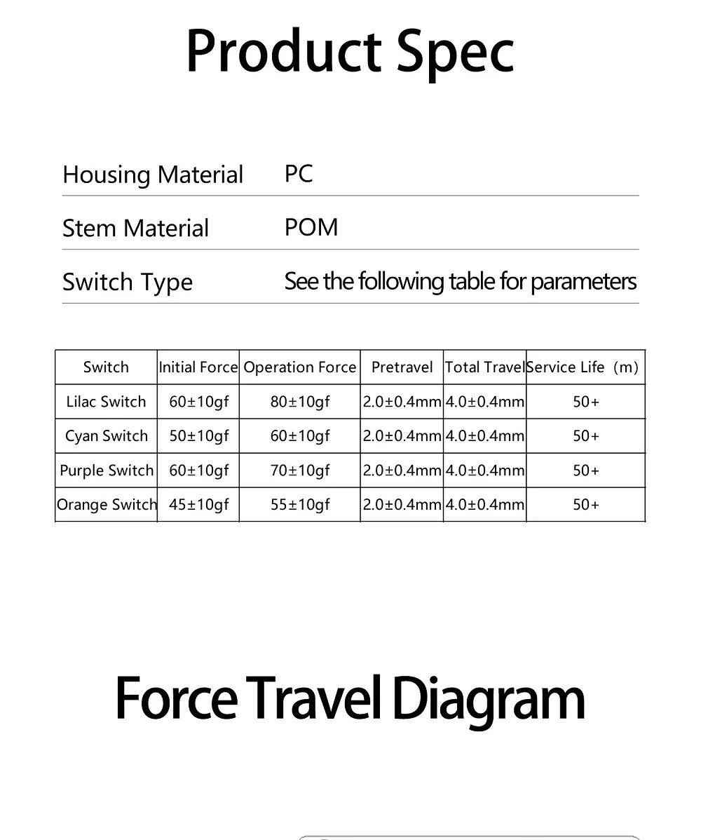 Переключатель Huano, переключатель для механической клавиатуры, RGB SMD, 60 г, 80 г, 3pin, розовый, сиреневый, голубой, фиолетовый, оранжевый