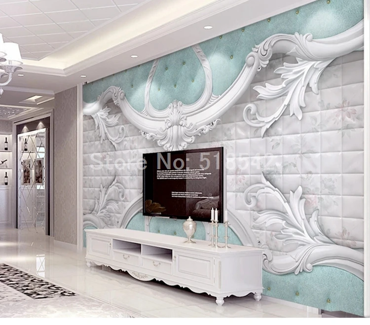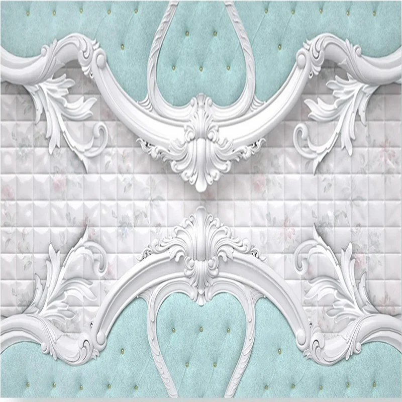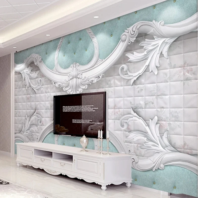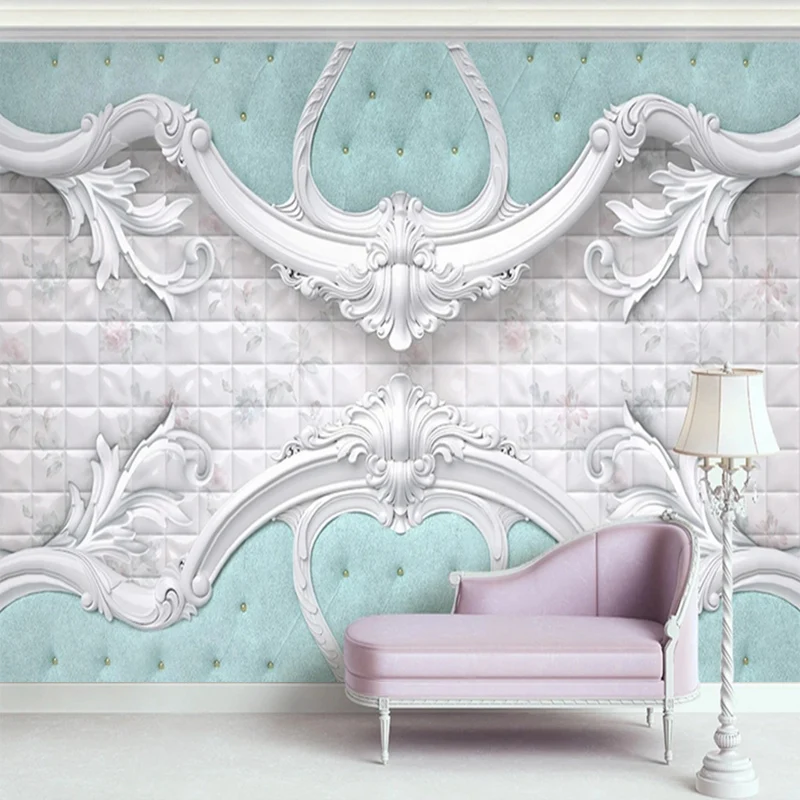 Пользовательская 3D фотография Европейский роскошный мягкий мешок синий белый настенный бумажный нетканый бумажный для спальни гостиной ТВ дивана фон настенная роспись