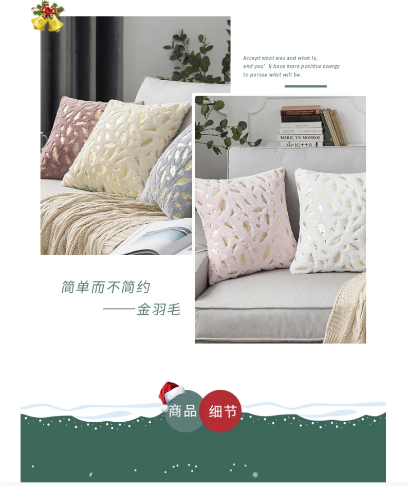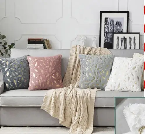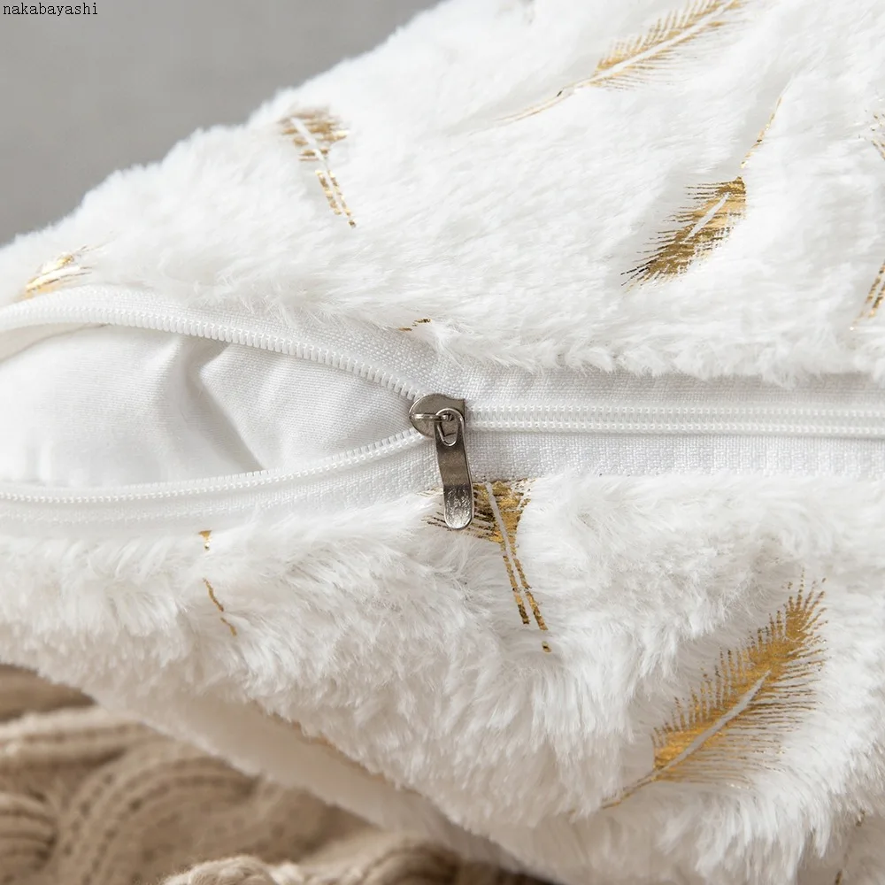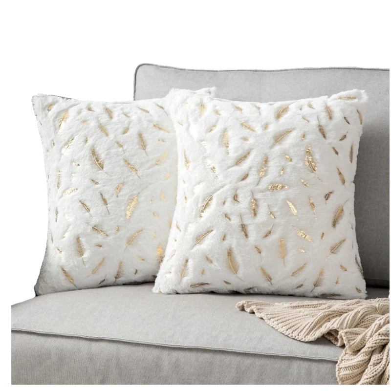 Модный дизайнерский чехол для подушки с золотыми перьями, чехол для домашней наволочки с белым и серым рисунком