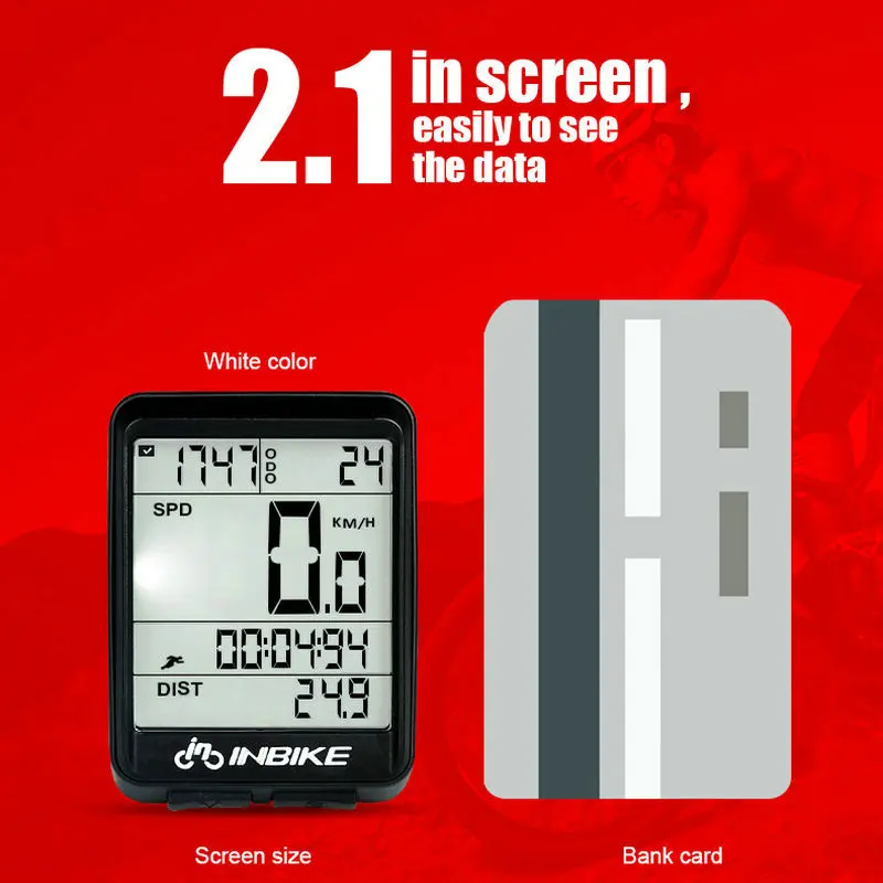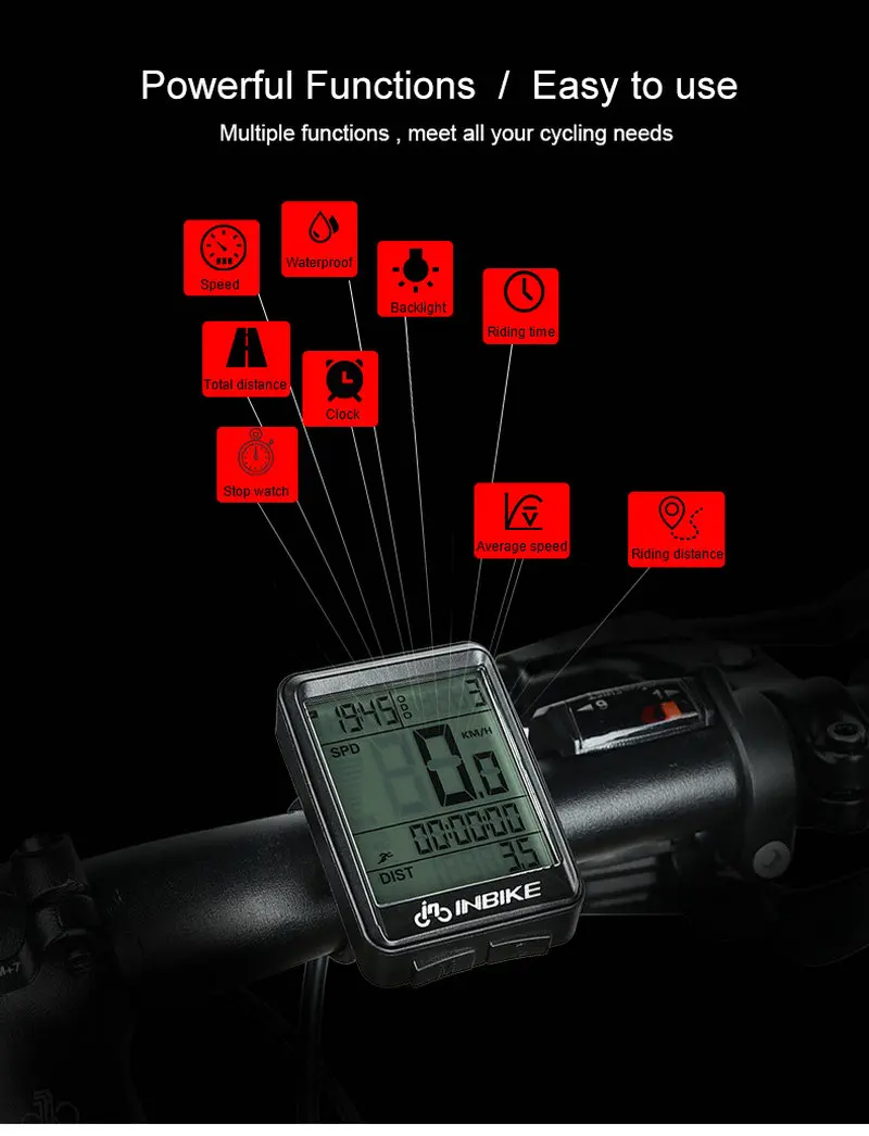 INBIKE Водонепроницаемый велосипедный компьютер беспроводной и проводной MTB велосипедный одометр непромокаемый секундомер Спидометр светодиодный цифровой измерительЭтот товар изготовлен из качественного материала с тонкой обработкой, он легкий, портативный, прочный, водонепроницаемый, устойчивый к высоким и низким температурам. Экран светится и четко отображает время, среднюю скорость, максимальную скорость, расстояние и т. д. этот товар идеально подходит для любителей езды.