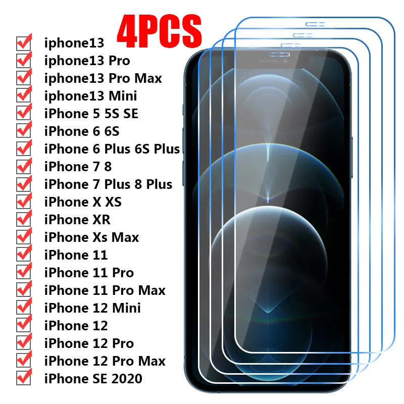 4 шт. прозрачное закаленное стекло на iPhone 13 Pro 13 Mini 12 Pro 11 XR Защита экрана для iPhone 12 Pro Max 12 Mini 11 7 8 6 Plus