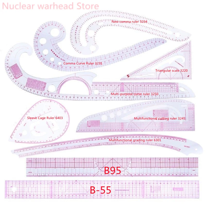 Многофункциональная линейка для шитья, 9 шт., линейка для изготовления образцов одежды, режущая линейка, пластиковая измерительная линейка