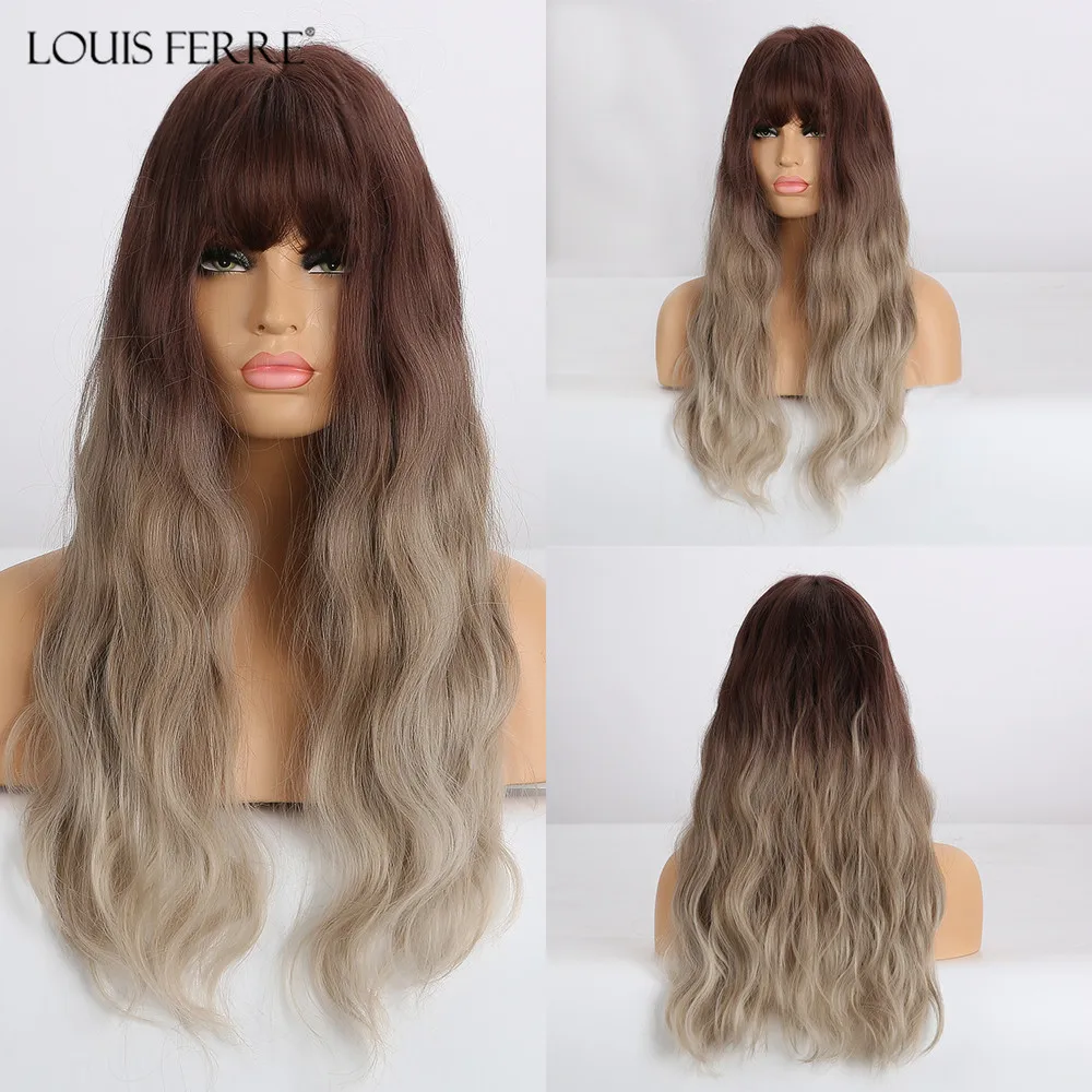 Луи Ферре длинные волнистые парики синтетические парики Омбре синий фиолетовый парики с челкой Высокая температура волокна для черных женщин термостойкие