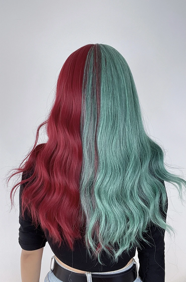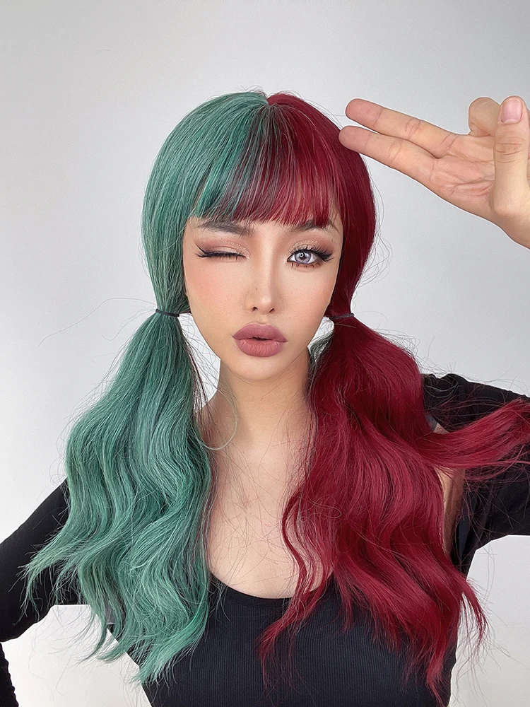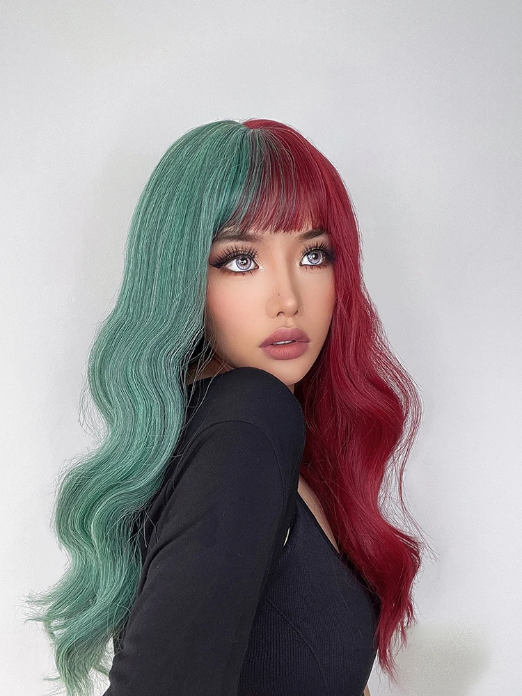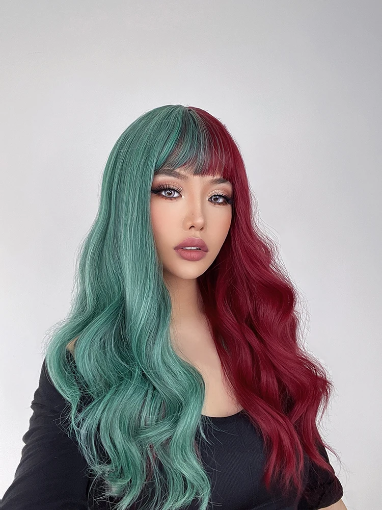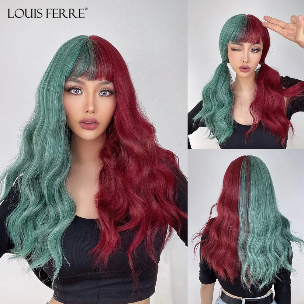 Синтетические парики для косплея LOUIS FERRE, термостойкие парики машинной работы, длинные волнистые полукрасные зеленые парики с челкой для чернокожих женщин
