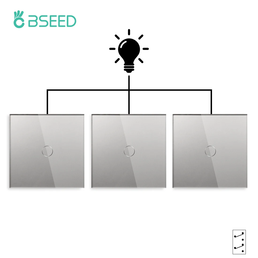 Настенные сенсорные переключатели BSEED, 220 В, 12 клавиши, 23 канала, сенсорный переключатель, панель из хрустального стекла со светодиодный Ной подсветкой, стандарт ЕС, 3 шт.упаковка, серого цвета
