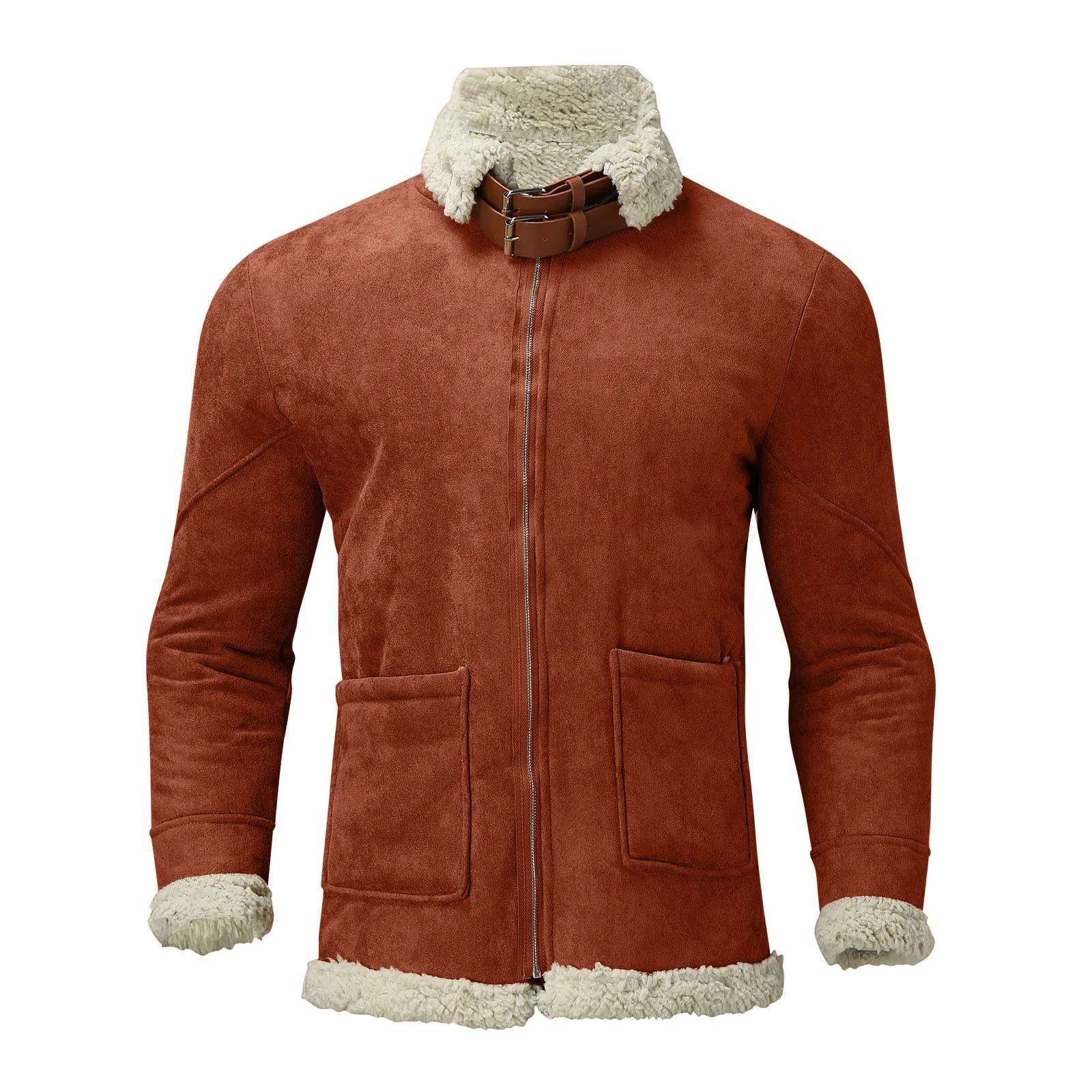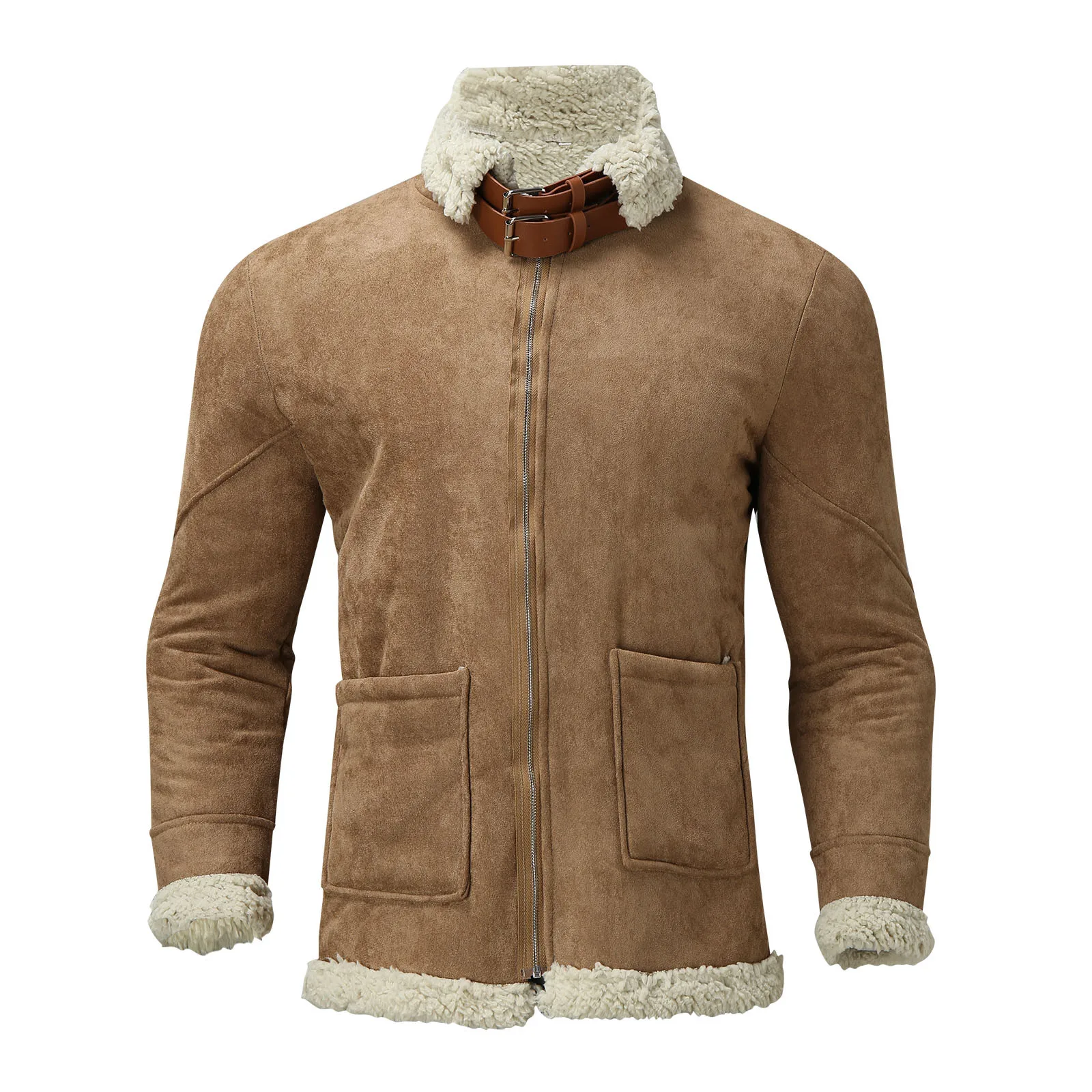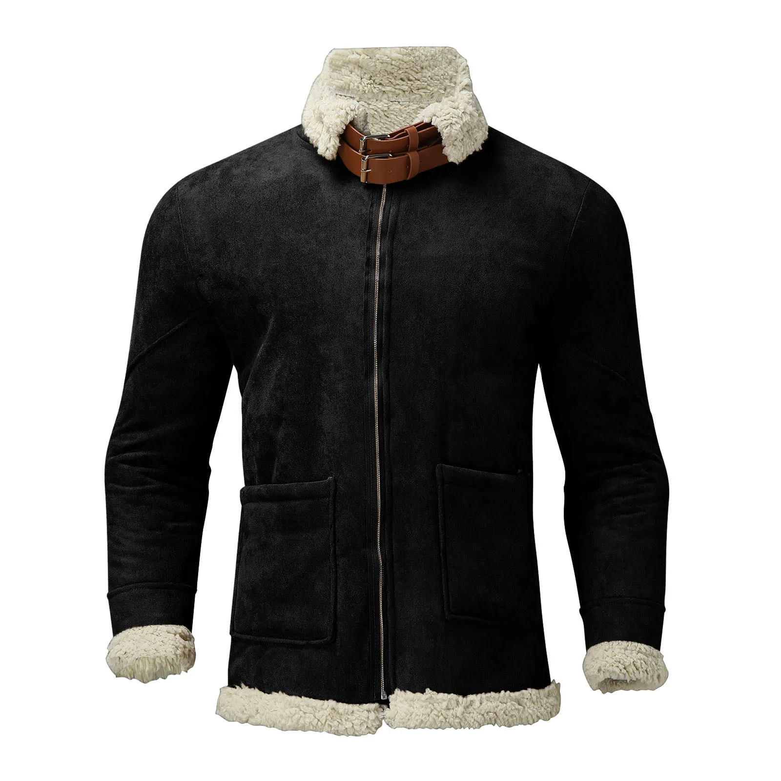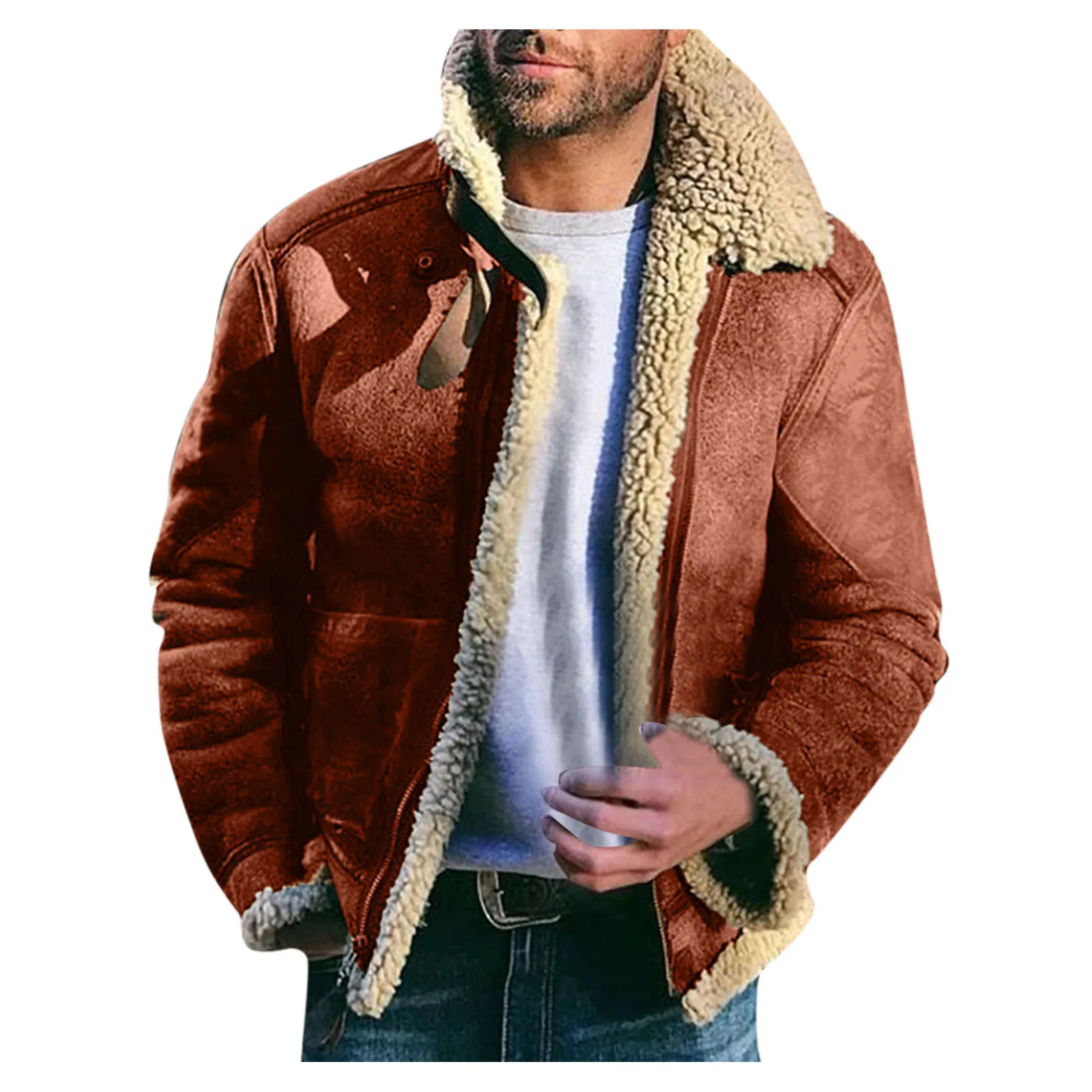 Осенняя мужская куртка-бомбер с лацканами, повседневная мужская верхняя одежда, флисовая плотная теплая Вельветовая куртка, мужские однотонные бейсбольные пальто # t3g