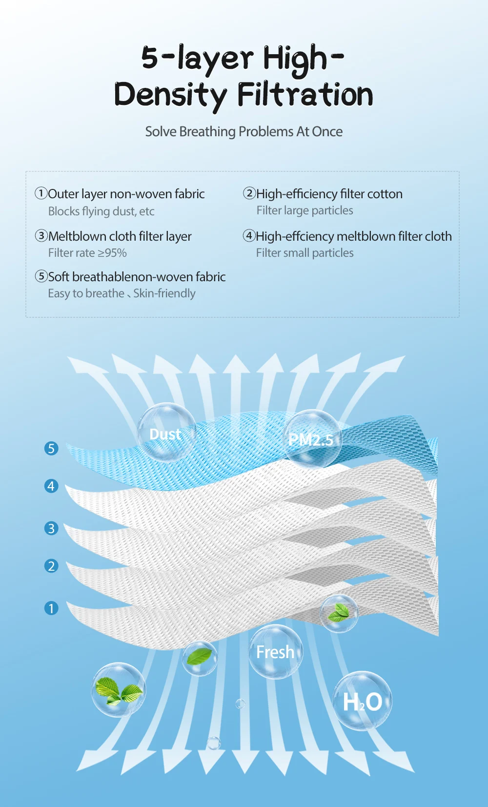 Милые детские 3D маски KN95, 5 слоев, Мультяшные дышащие многоразов...