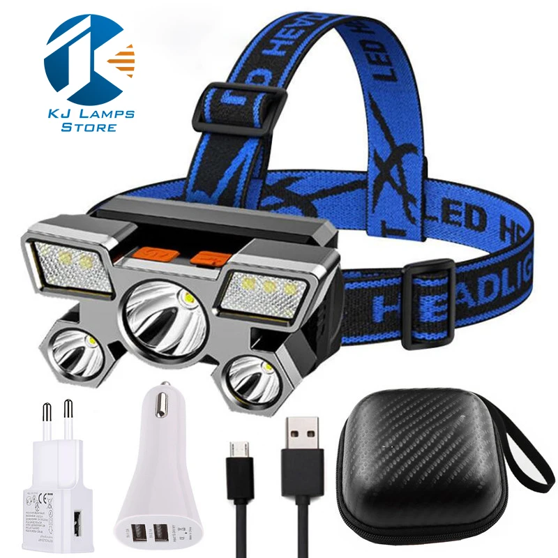Прямая поставка, 5 светодиодов со встроенным аккумулятором 18650, USB перезаряжаемый портативный фонарик, фонарь, налобный фонарь для кемпинга на открытом воздухе