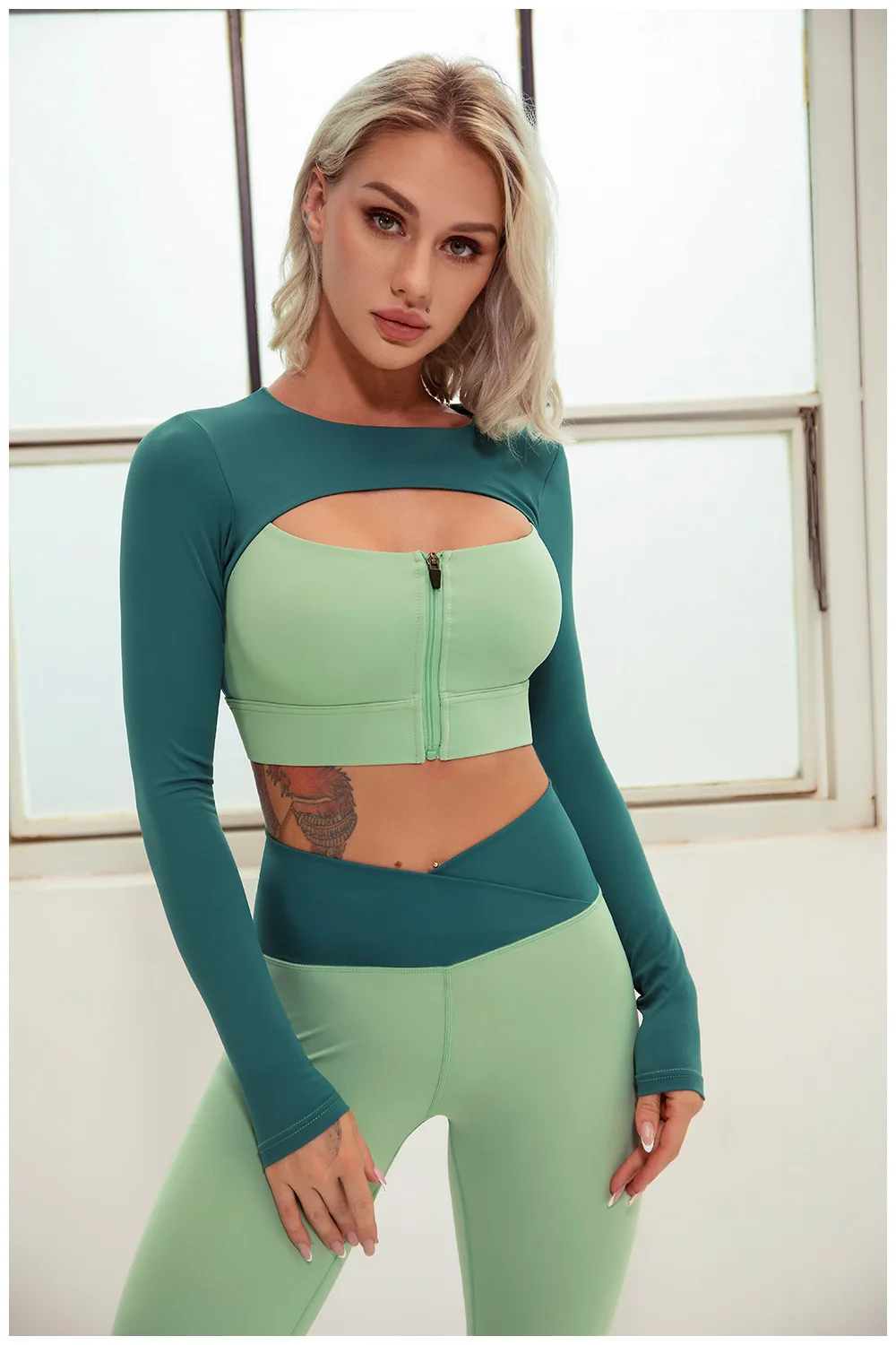 Женский комплект для йоги, сексуальные леггинсы на молнии с длинным...