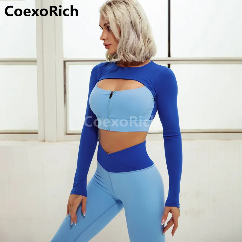 2022 Спортивная одежда Женская одежда для тренировок комплект для йоги с длинным рукавом укороченный топ с высокой талией леггинсы для фитнеса спортивный костюм