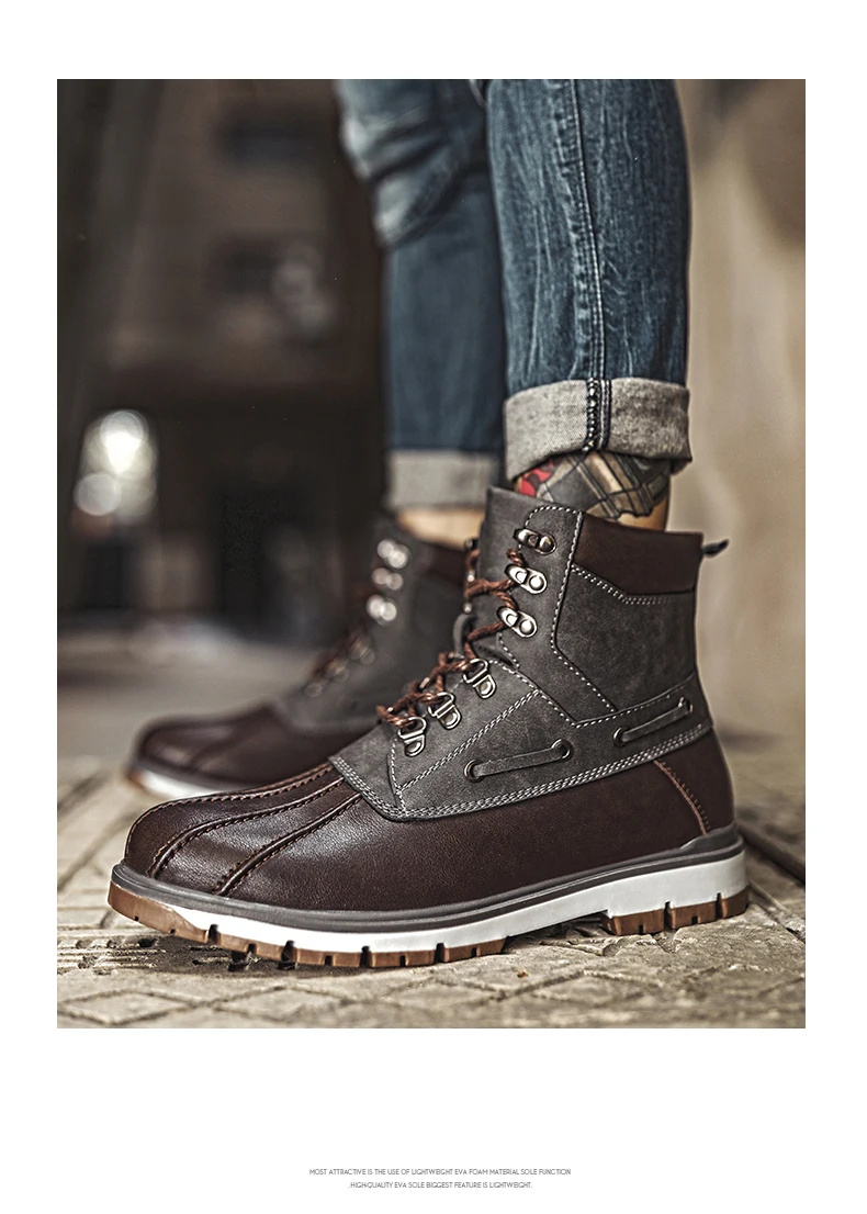 Мужские ботинки с высоким ремешком, зимние водонепроницаемые ботинк...