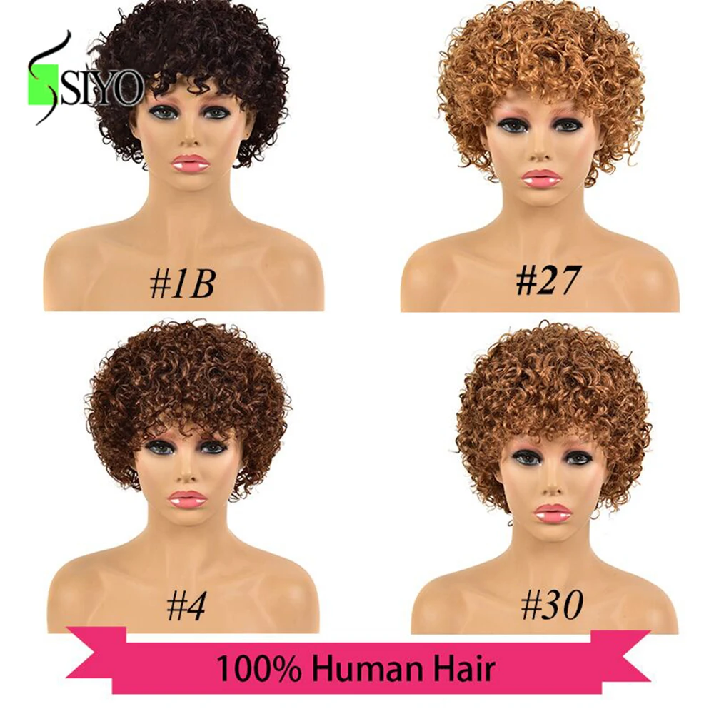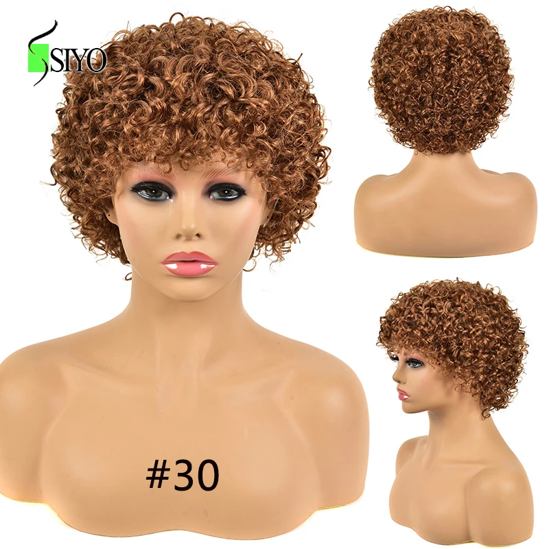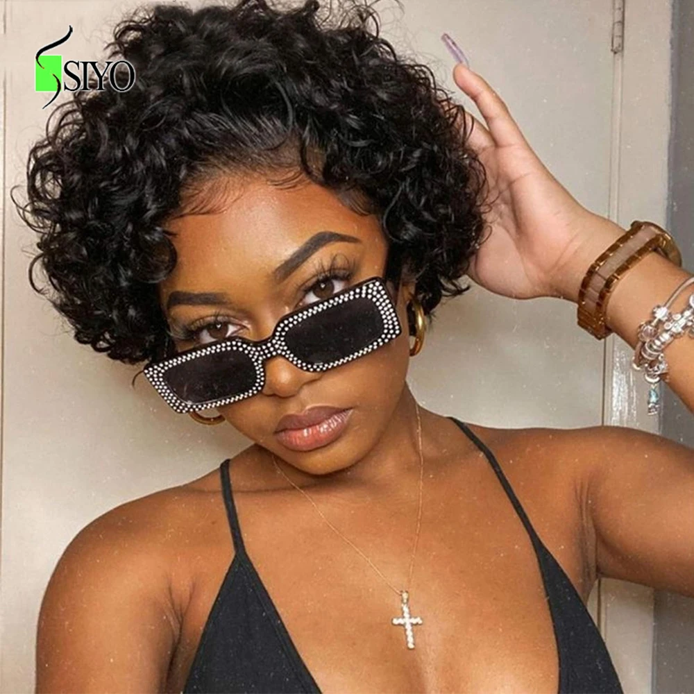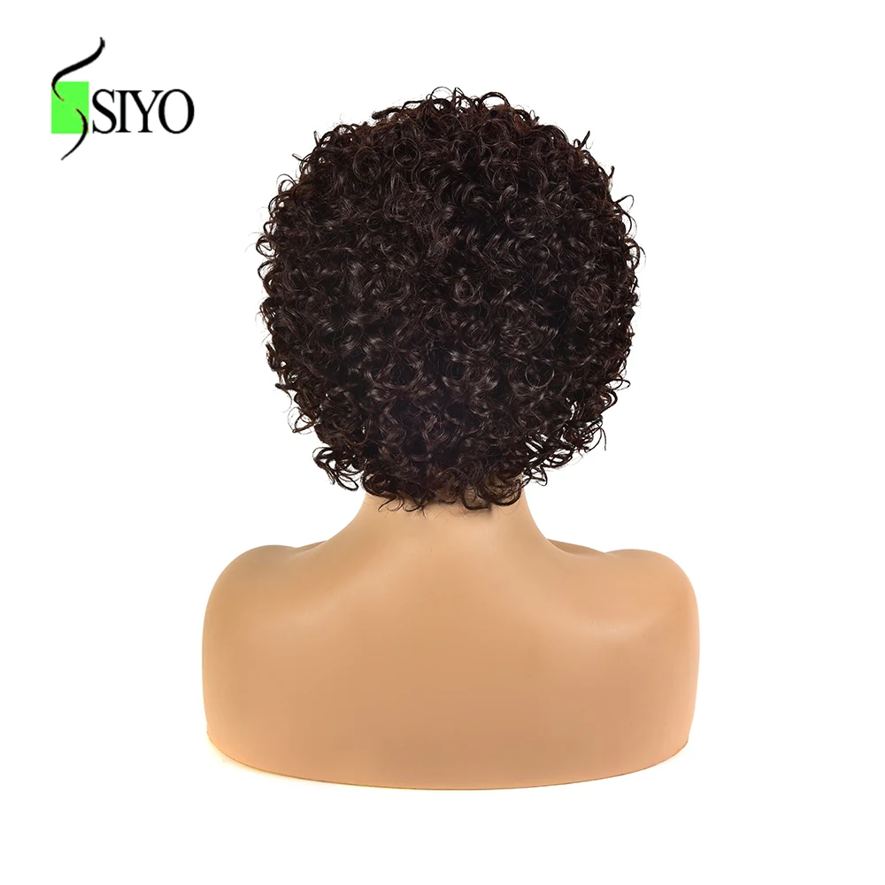 Парик Siyo из перуанских человеческих волос с водной волной, парик для чернокожих женщин, натуральный цвет, Короткие кудри, бесплатная доставка, парик из человеческих волос