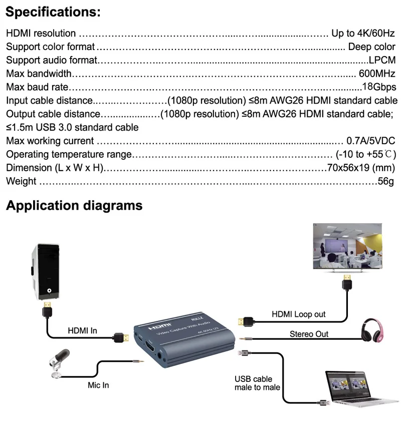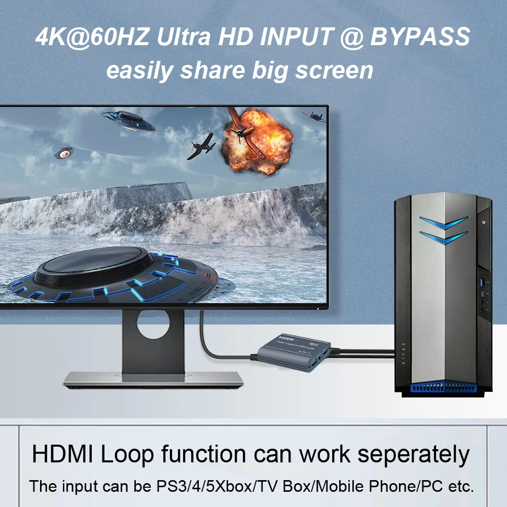 Видеозахват USB 3,0, 4K Loop Mic USB 1080, P HDMI-совместимая карта...