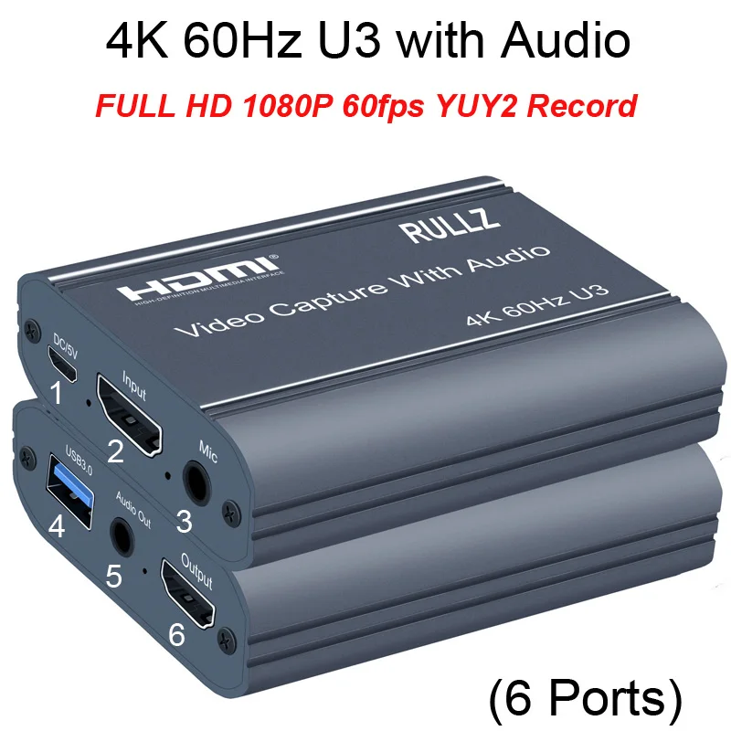 Rullz 4K 1080P USB 2,0 HDMI Карта видеозахвата Аудио Видео Запись к...