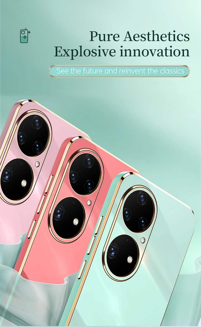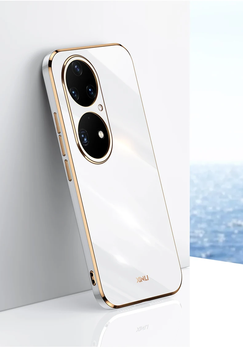 Высококачественный силиконовый чехол с покрытием для телефона Huawei P50 Pro, Ультратонкий Мягкий чехол с прямыми краями