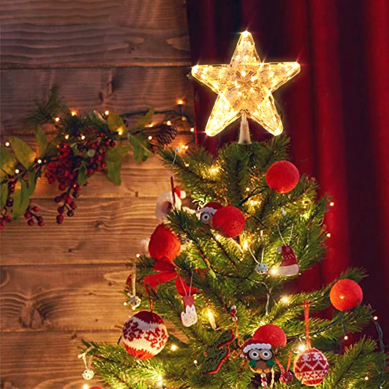 Освещенная Рождественская елка, Топпер, звезда, прозрачные огни, рождественские украшения, украшения, рождественские украшения Noel Navidad 2021