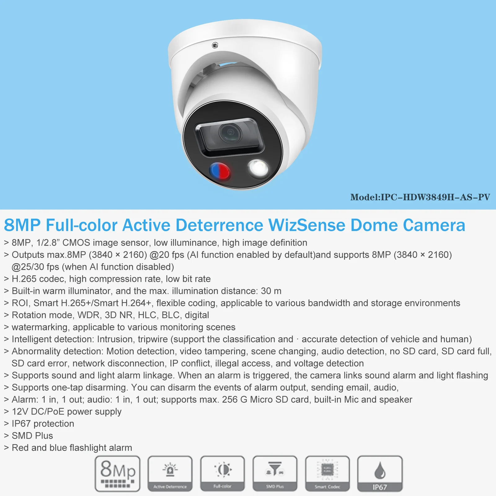 Dahua OEM 8MP IP-камера WizSense IPC-HDW3849H-AS-PV полноцветная H2...